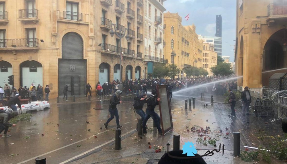 من جهتها، أطلقت القوى الأمنية خراطيم المياه باتجاه المتظاهرين محاولة إبعادهم عن الفاصل الحديدي.