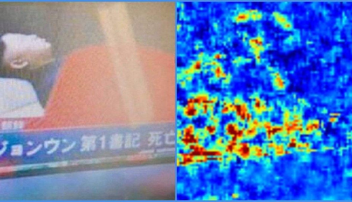 اللغة هي اليابانية. キム・ジョンウン وكتب: خبر عاجل (Breaking News) وفاة كيم جونغ ان، السكرتير الأول، اضافة الى شعار JNN News (اسفل الى اليمين)، وهو اختصار لــJapan News Network.