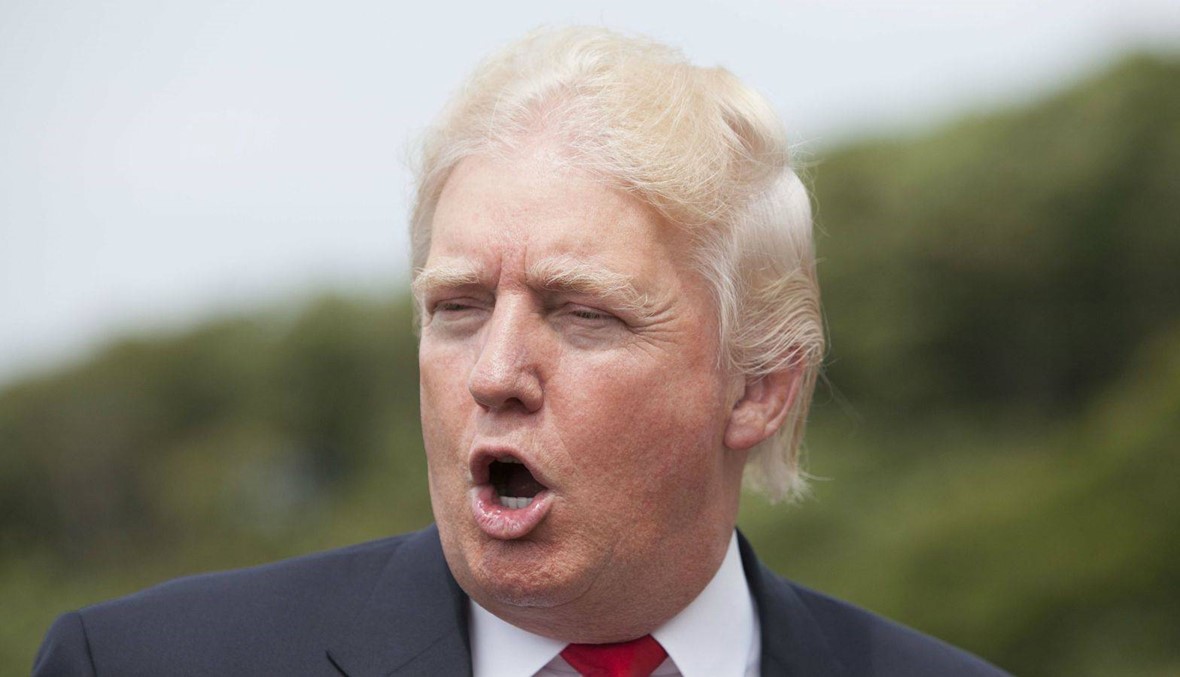 في الحقيقة، أنّ شعر دونالد ترامب ينمو بكثافة من الأمام وباتجاه مختلف عن باقي خصلات شعره. لذا يُمشّطه الى الوراء مستخدماً مثبتاً للشعر.