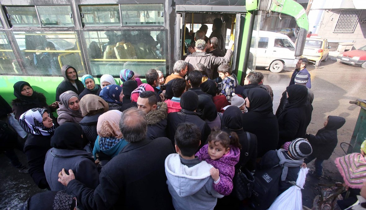 واستأنفت الباصات التي رفعت على عدد منها صور الرئيس السوري بشار الاسد الى جانب العلمين السوري والروسي، عملها بعد ايام من سيطرة الجيش على اكثر من ستين في المئة من الاحياء الشرقية التي كانت تحت سيطرة الفصائل المقاتلة منذ العام 2012.