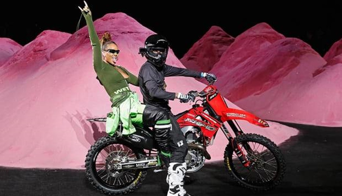 كانت بداية عرض أزياء فنتي بوما لربيع 2018 صاخبة إذ ظهرت المغنية #ريانا وهي تقود دراجات نارية وتتشقلب بها في الهواء وتطير فوق جبال وردية خلال أسبوع أزياء نيويورك.