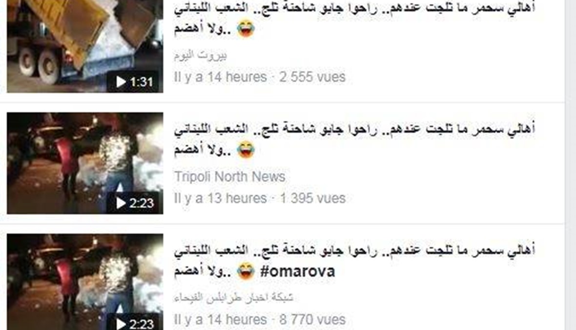 -يبيّن البحث ان نشر فيديوات عن "وصول كميون الثلج الى ساحة سحمر" انتشرت على "الفايسبوك" ابتداء من الساعة 17,25 مساء الخميس 17 ك2 2019.