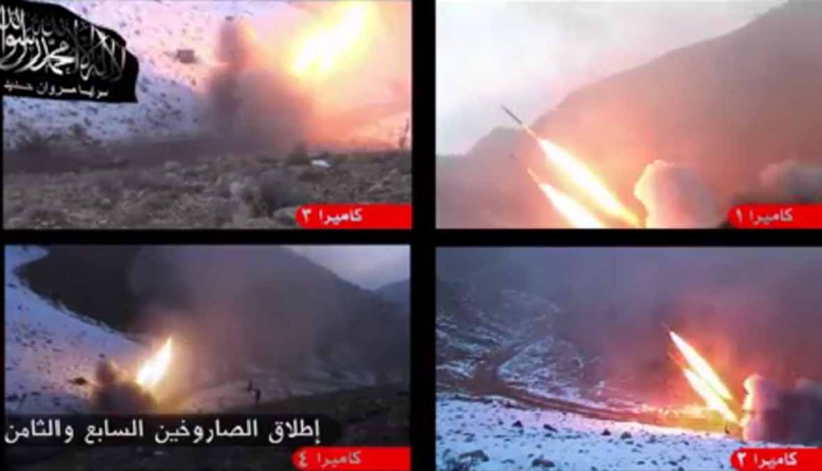 نشر فيديو على موقع "يوتيوب"، أظهرت فيه سرايا مروان حديد و"جبهة النصرة" كيفية اطلاق عشرة صواريخ "غراد" على "معاقل حزب الله في الهرمل" أمس الثلثاء، وصورتها بأربع كاميرات.