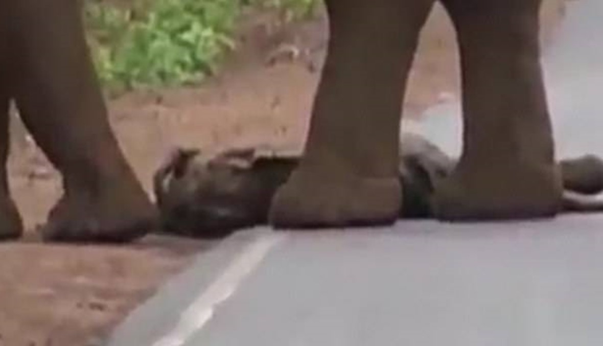 في مشهد مؤثّر، شوهدت فيلة حزينة وهي تحمل جثة فيل صغير وتعبر الطريق ويسير خلفها قطيع من الفيلة، وبدت اللقطات كأنّه "موكب جنازة" للصغير.