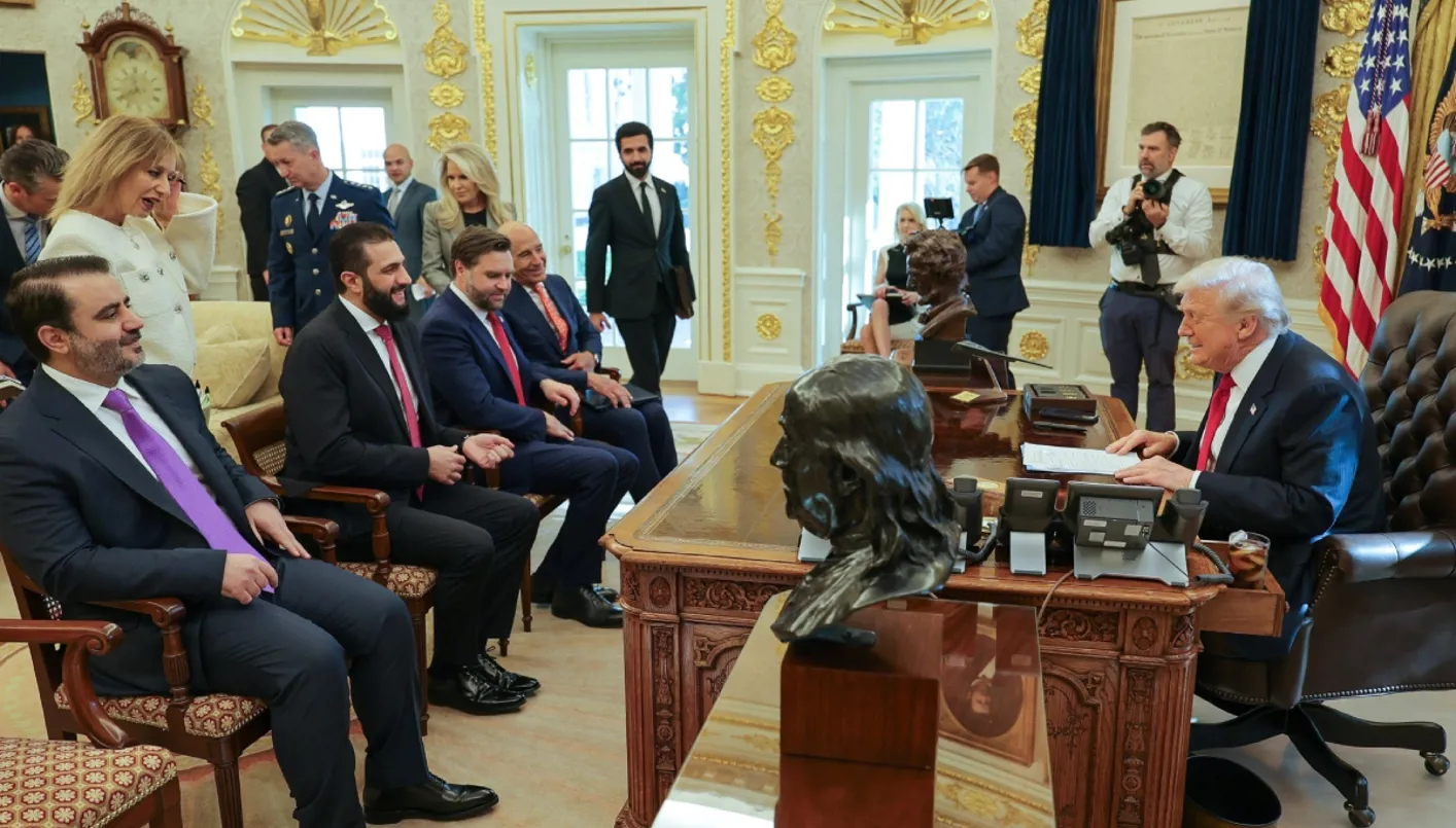 قبل ذلك، قالت الرئاسة السورية إن الشرع عقد مع ترامب جلسة مباحثات في البيت الأبيض اليوم الاثنين بحضور وزيري خارجية البلدين أسعد الشيباني وماركو روبيو.