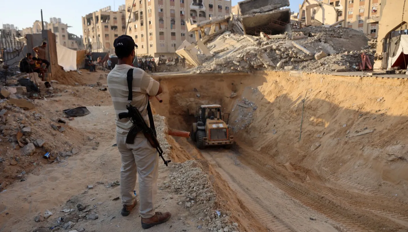 من عمليات البحث عن جثث في خان يونس جنوبي قطاع غزة. (أ ف ب)