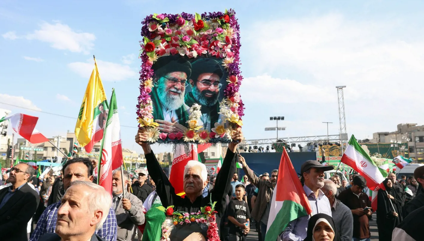إيرانيون خلال تجمّع في طهران دعماً للمرشد الجديد مجتبى خامنئي. (أ ف ب)