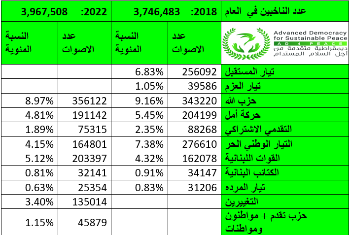 يتبين من هذا الجدول ان الطبقة السياسية التي حكمت في الحكومات ما بعد انتخابات 2022 مثل "العزم"، "حزب الله"، حركة "أمل"، الاشتراكي، "التيار "، "المردة"، الطاشناق لا تمثل سوى 27.62% من اللبنانيين.