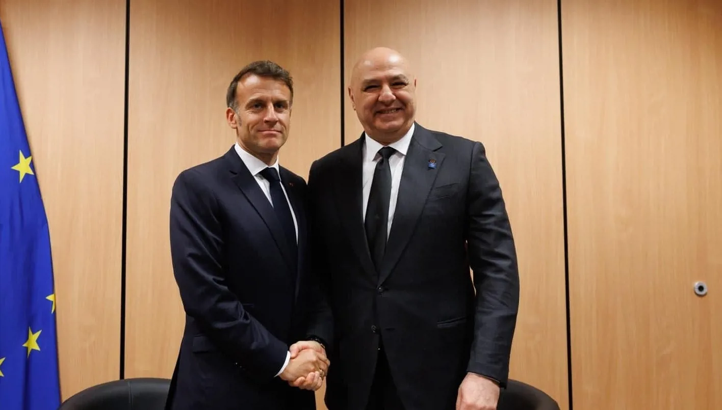 الرئيس اللبناني جوزاف عون والرئيس الفرنسي إيمانويل ماكرون في الاجتماع غير الرسمي لرؤساء دول وحكومات الاتحاد الأوروبي في نيقوسيا. (الرئاسة اللبنانية)