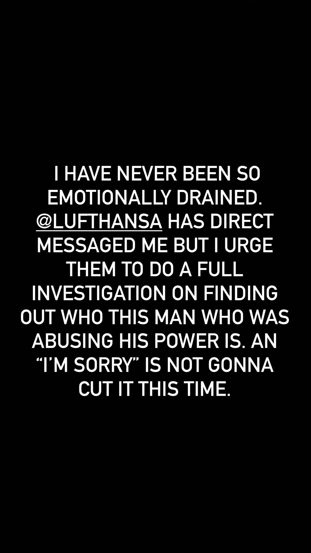 وعلّق ممثل عن شركة لوفتهانزا عمّا تعرّضت له ريكسا، مؤكّداً في تصريح لموقع "تي أم زي" أنّ الشركة على تواصل مباشر مع الأخيرة لمعرفة تفاصيل القصة الكاملة، مضيفاً أنّ الشركة تربط بين الناس من جميع أنحاء العالم، وأنّ التنوّع وتكافؤ الفرص قيمتان أساسيتان فيها، مشدّداً على عدم التسامح مع أيّ نوع من أنواع التمييز.
