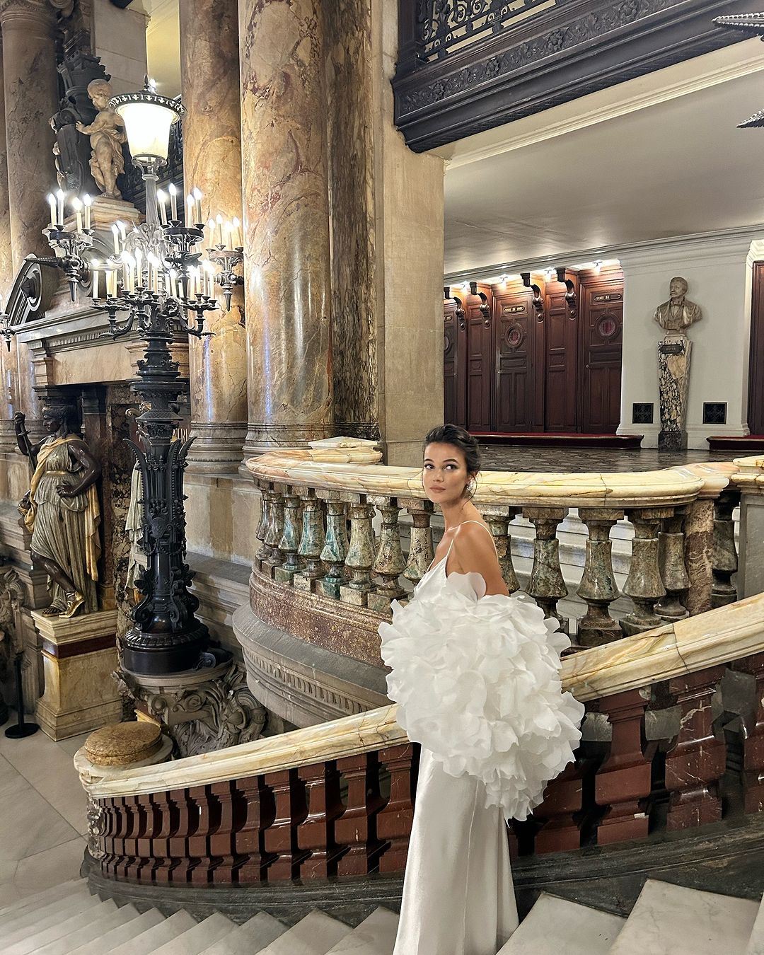 وبعد أيام من ارتدائها الأبيض في حفل زفافها في روما، أطلّت دينيز مرّة أخرى بفستان أبيض جذاب في عرض "لوريال"، نسّقته مع شال مكشكش وكعب عالٍ باللون البيج.