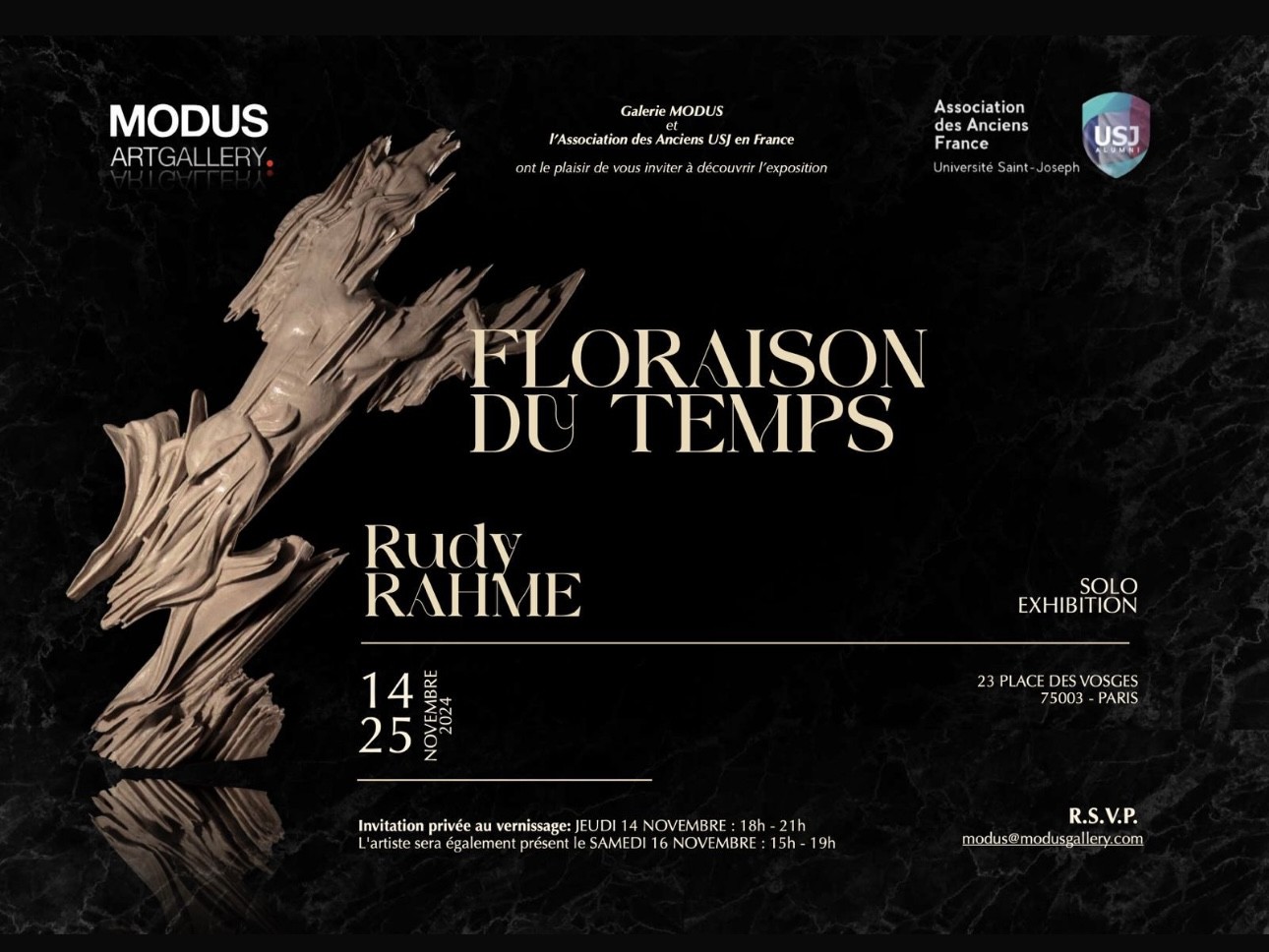 "تفتّح الزمن" معرض جديد يؤكد أنّ خلف أعمال رودي رحمة، النحات والفنان والشاعر، يقف رحمة المفكّر والمتأمّل الدائم في طبيعة الانسان عبر الازمان.