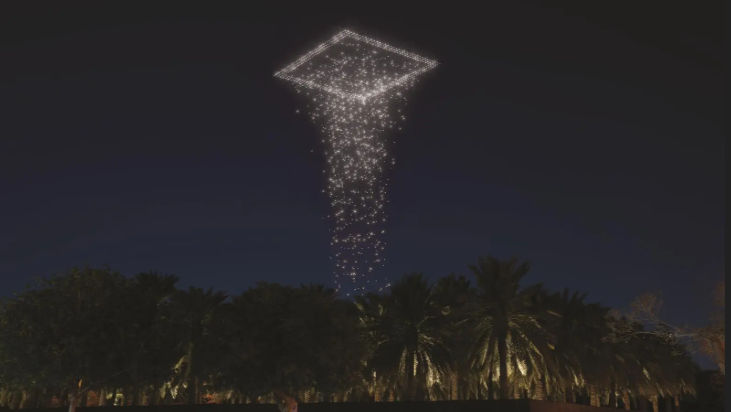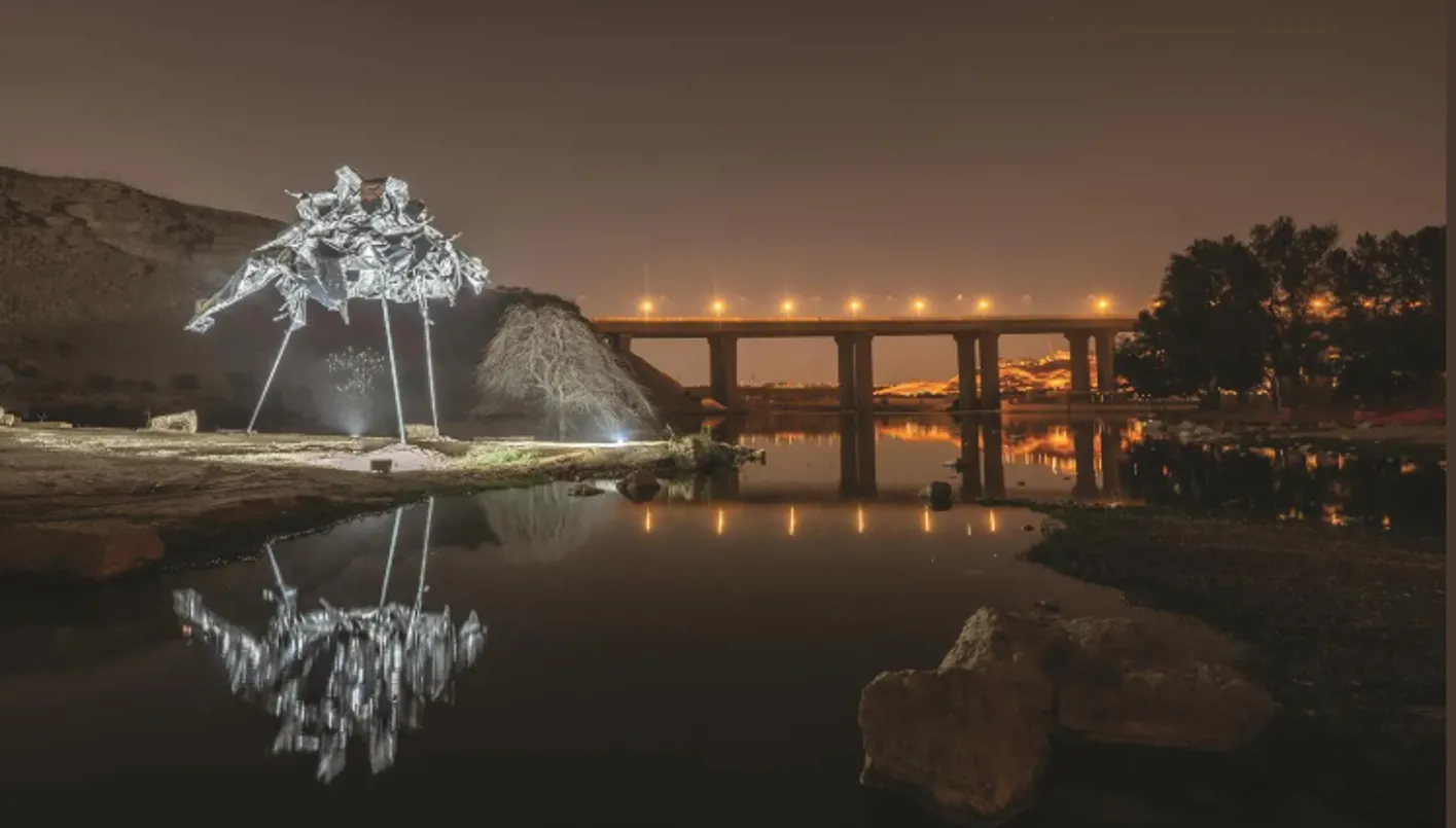 وانطلاقًا من قلب الرياض، يقدم الفنان كريس ليفين عمله الفني" القوة العليا 2024" وهو تركيب ضوئي على مستوى الرياض يُعرض من أعلى برج الفيصلية بارتفاع 267 مترًا. يمكن رؤية العمل في أنحاء المدينة، حيث يبث رسالة مشفرة باستخدام شفرة مورس التي ترمز إلى قدرة الضوء على نشر السلام والأمل والتغيير الإيجابي، ويقدم الفنان دان روزجارد من خلال عمله الفني "سبارك" في وادي حنيفة شرارات مضيئة تتطاير في الهواء، قابلة للتحلل الحيوي، حيث تكون بديلة عن الألعاب النارية ومستوحاة من النجوم واليراعات، صُممت هذه الشرارات العضوية لتتبخر في الليلة نفسها التي تتطاير فيها، لتضيء المناظر الطبيعية لوادي حنيفة من خلال تصميم وتقنية مستدامة وفي جانب آخر في مركز الملك عبدالعزيز التاريخي، يقدم الفريق الفني يونايتد فيجوال أرتيستس العمل الفني الذي يتألف من 1,500 طائرة مسيّرة، مستوحى من الفكرة القديمة للقوى الخفية التي تشكّل عالمنا، حيث يستلهم العرض الجوي، الذي يستمر لــ 7 دقائق ، مفهوم “الموسيقى الكونية” للفيلسوف فيثاغورس، الذي يقترح أن الكواكب تخلق شكلًا من الصوت لا يمكن للأذن البشرية سماعه وبهذا يجسد العمل الفني "أثير" التناغم الصامت بين النجوم والكواكب، ويحول غير المرئي إلى مشهد مذهل كما يضم المركز عمل الفنان السعودي راشد الشعشعي بعنوان "الهرم الخامس"، الذي يعيد تشكيل الهرم القديم عبر مسار مضيء يرمز إلى إعادة تشكيل الأنظمة السابقة، ويدعو الزوار للتأمل في تحول الرياض إلى عاصمة للفن.