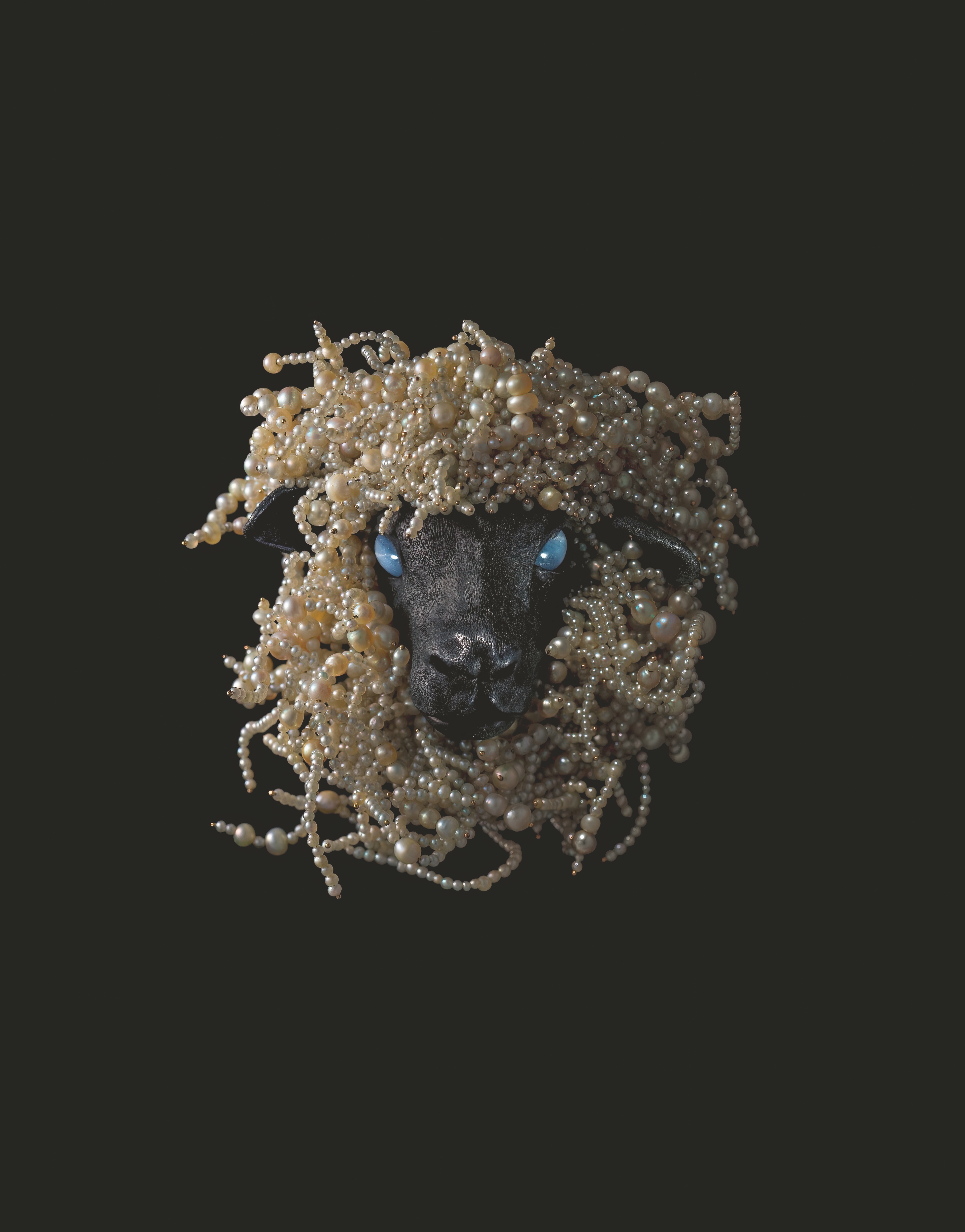 رأس خروف محاط باللؤلؤ.