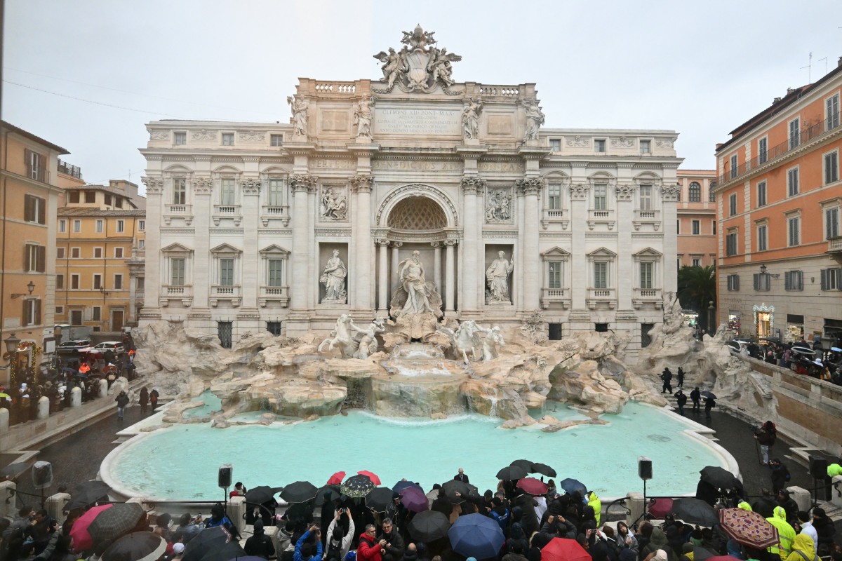 وأقيم الحفل الأحد تحت أمطار خفيفة، بحضور مئات السائحين، قلّد كثر منهم رئيس البلدية من خلال رمي عملات معدنية في النافورة.