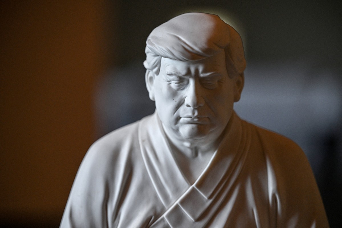 خلافاً للصورة الصاخبة، يُظهر تمثال خزفي ترامب جالساً متربّعاً، عينيه شبه مغلقتين، على غرار بوذا، في تصريح فنّي ساخر حول ثقافة المشاهير، والسياسة، وفنّ تحويل الشخصيات العامة إلى سلع استهلاكية.