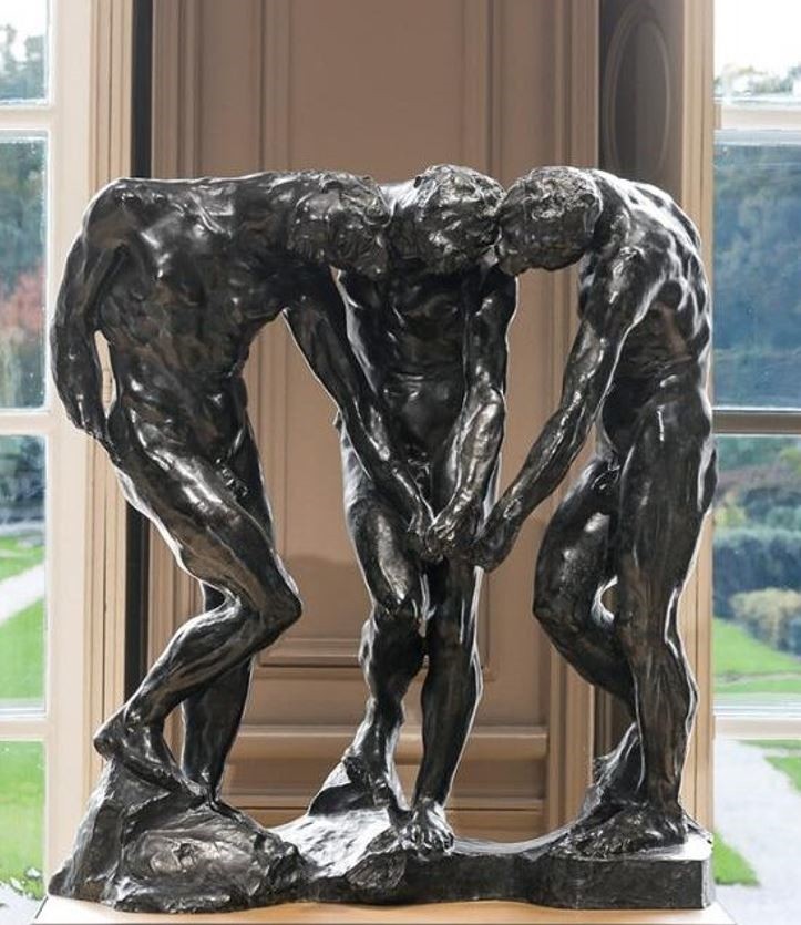 استوحى رودان هذا التمثال من رائعة دانتِه "الكوميديا الإِلهية" (1321). وهو يمثِّل أَرواح الملعونين الثلاثة المغضوب عليهم. نفَّذه رودان ليكون عند أَعلى عمله الضخم "أَبواب الجحيم". وهو نحتَ فيه ثلاثة أَشخاص متشابهين متماسكين في شبه دائرة، تدل أَجساهم على الخيبة واليأْس والندم، كما يظهر في رقابهم المنحنية وأَكتافهم المهدومة، ما يؤَكِّد مظهر الانحناء المهزوم والتوتُّر المشترك بينهم. والمشهد العام يُبرز براعة رودان في صنع تماثيل أَخَّاذة وغير اتِّباعية حيال ما كان متَّبَعًا.