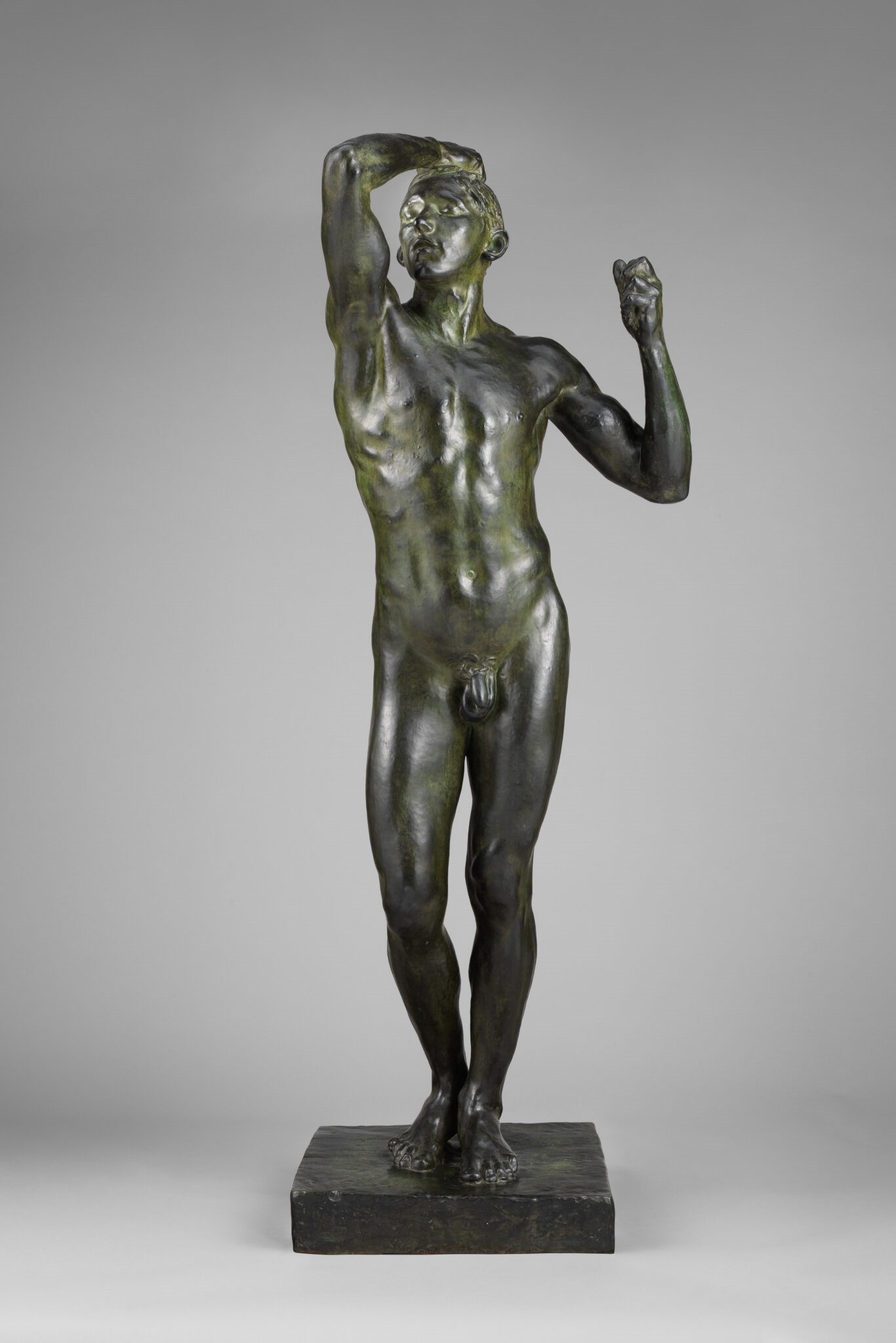 عرضه رودان سنة 1877 فكان صادمًا بجديدٍ في مسيرته الفنية، إِذ إنه ابتعد عن الإِملاءات الأَكاديمية التقليدية، فنَحَتَ وجهًا يوحي بنبض الحياة، وعينَين مغْمَضَتَين وشَفَتَين شبه مفتوحَتَين كأَنها لحظة الوعي والنهوض. ومرة أًخرى استوحى رودان تمثاله من رائعة ميكالنجلو "الـمُستَرَقُّ المائت" (1516) من العصر الكلاسيكي الإِغريقي، لكنه أَعطى وجه الشخص وقفة خاصة ترتكز على ساقٍ واحدة. وهذا التمثال، بواقعية ملامحه، أَثار ضدَّه نقَّادًا اتهموه بأَنه وضع تمثاله نقلًا مباشرًا عن موديل حي أَمامه، وهو ما جعلَ شُهرة التمثال أَكبر، خصوصًا أَن رودان دعا زوار المعرض إِلى الاستدارة حول التمثال من جميع جهاته، كي يتبيّنوا دقة ما أَعطاه رودان من تفاصيل دقيقة للحركة والحياة بفضل مَن كان أَمامه حين كان يَنحت التمثال.