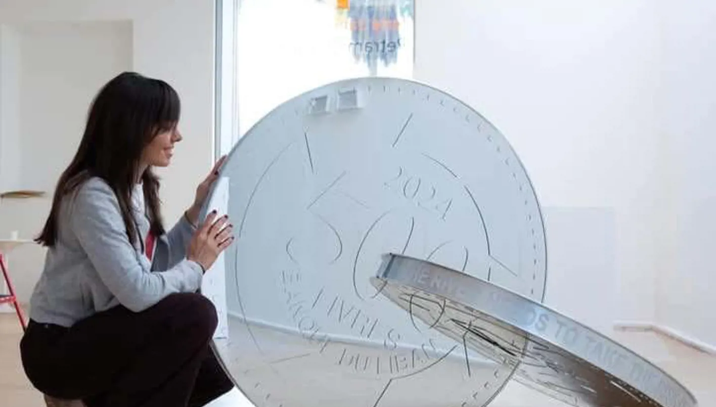 تتوسط الغاليري، قطعة نقدية (الخمسين -50- ليرة الفضية) بحجم كبير، لولبية دائرية، تتحرك كيفما لمسها المتابع، ويمكن توجيهها وقيادتها في اتّجاه لولبي حلزوني.