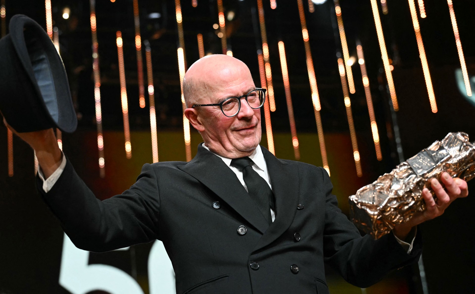 جاك أوديار يرفع جائزته في حفل "سيزار". (أ ف ب)