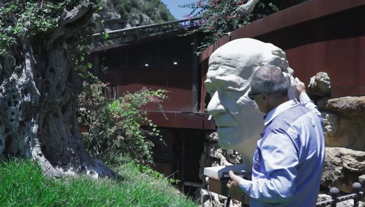 تعالوا معنا، بهدوء وصمت يُحاكي صمت الطبيعة وسكونها الأنيق، إلى هذا المكان المسكون بالضوء والرجاء. البوابة الخشبية المطعّمة بالحديد الصلب لن تُفتح أمامكم على مرسم كسواه، بل على وطنٍ مصغّرٍ منحوت من الحجر والخشب والبرونز والقصيدة. لا ضجيج هنا سوى وقع الخطى على الأرض التي تعرف أصدقاءها، وتنهيدة الشجر القديم، وأسرار الإزميل على أخاديد الحجر.