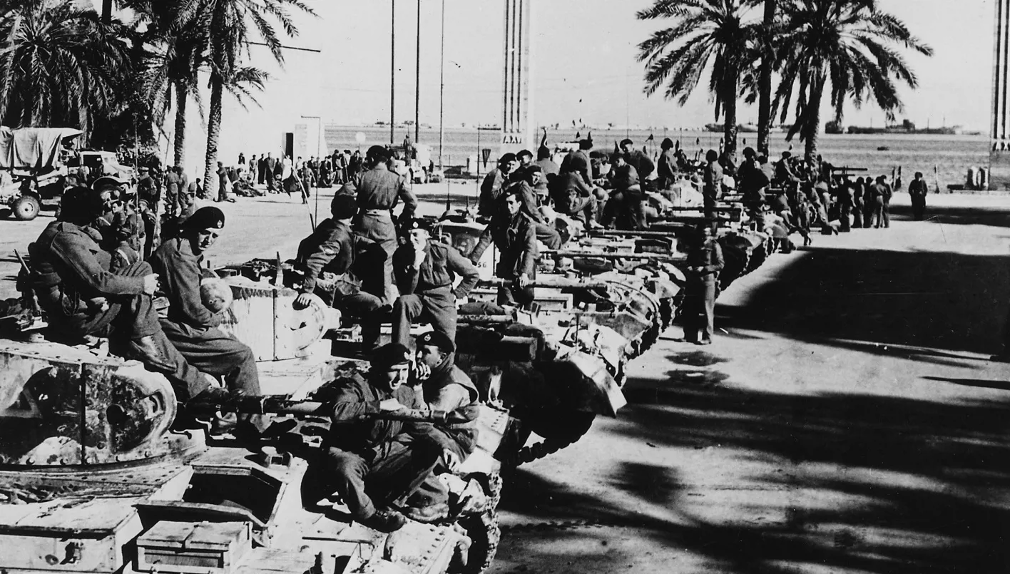 دبابات بريطانية عند الواجهة البحرية لطرابلس عام 1942. (NARA)
