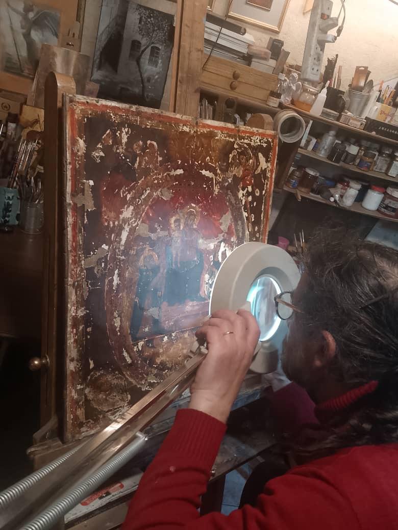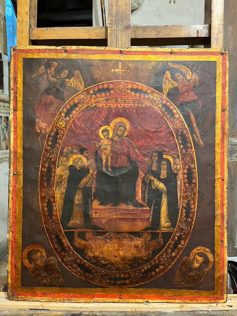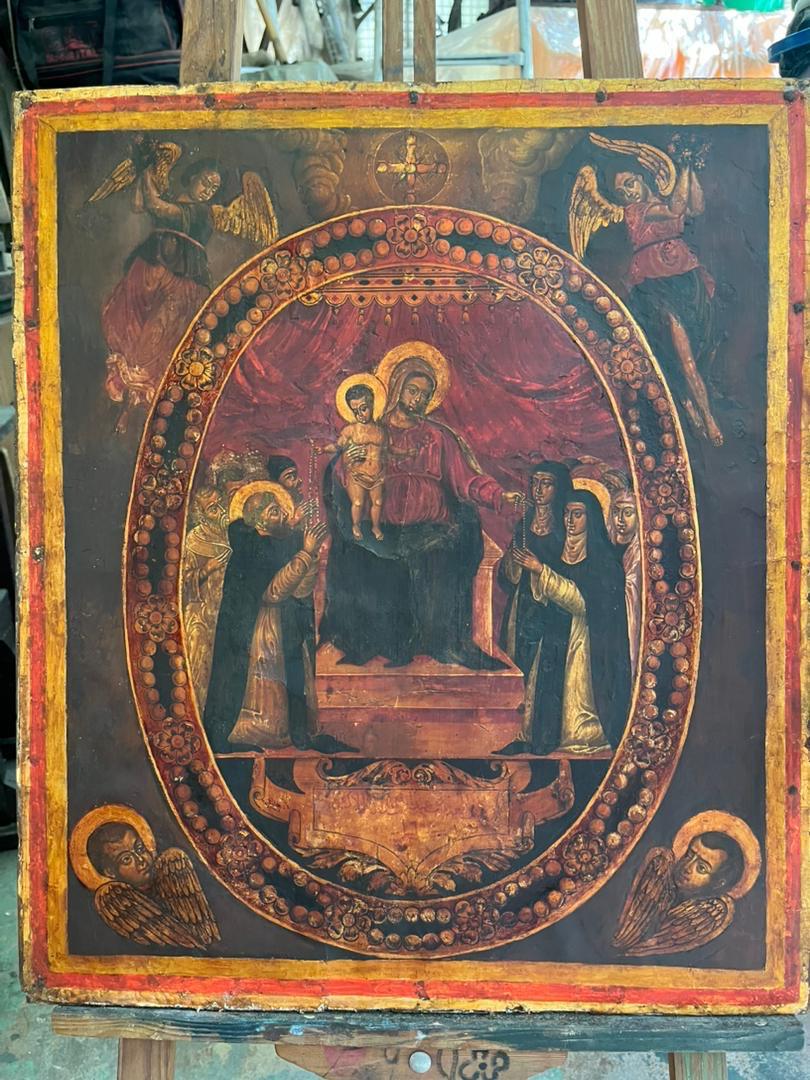 أوّل أيقونة بيزنطية ملكيّة للوردية المقدّسة اكتشفها نقولا الرياشي ورممها نعمة بدوي