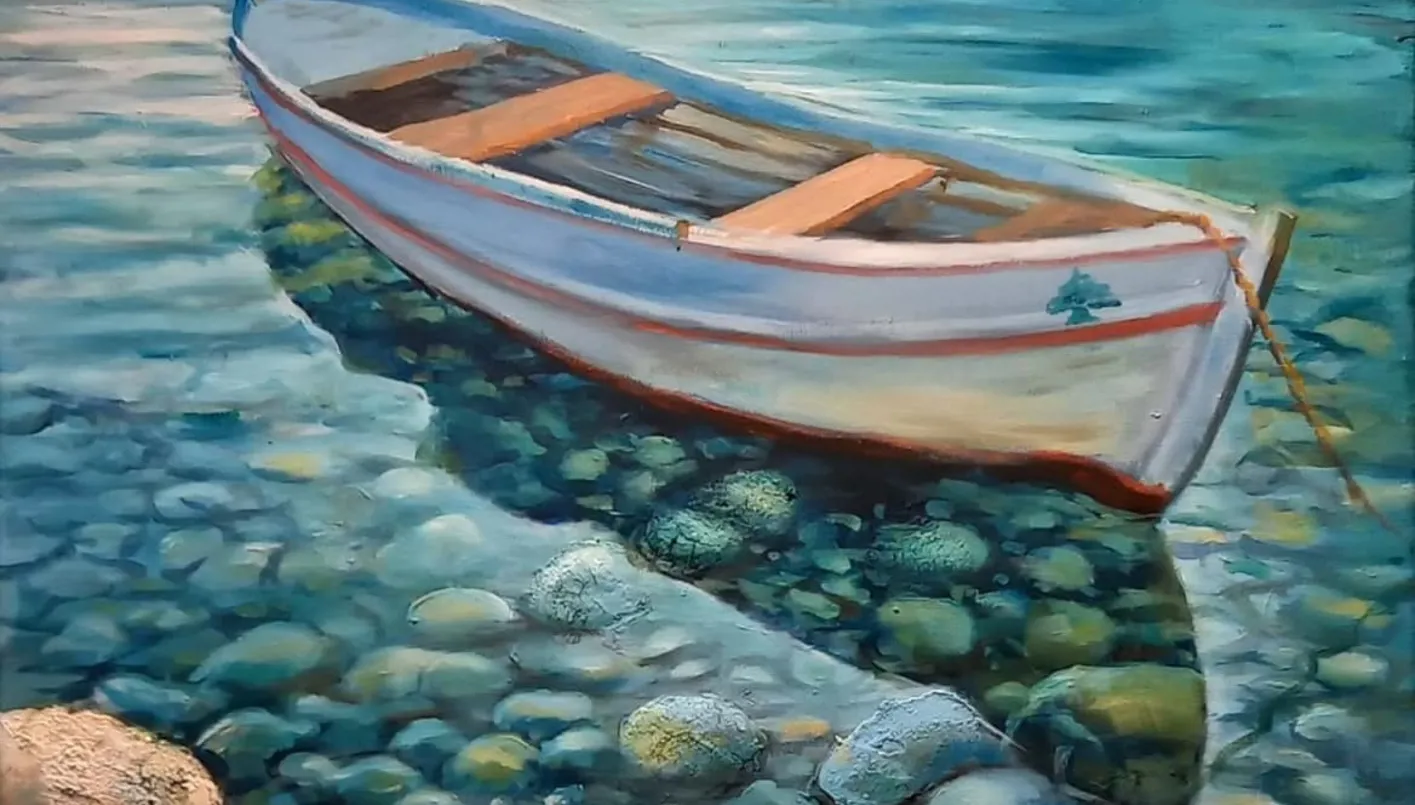 داخل أحد الثغور على شاطئ وطن الأرز الجميل، خلّد علي شحرور لحظة من السكون الذي يسبق العاصفة، في تحفته لوحة "القارب الحالم".
