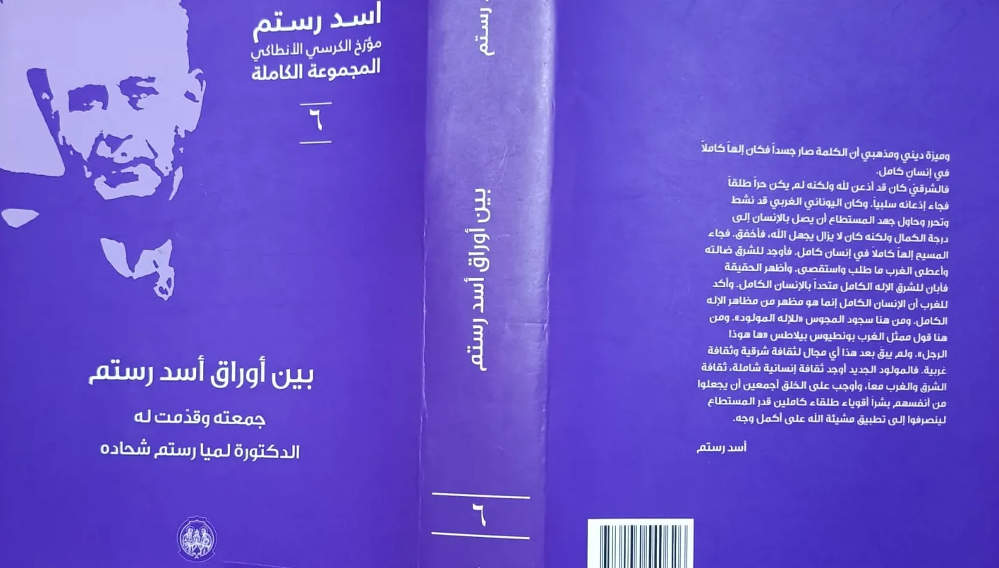 بهمّة "مؤسسة شاعر الفيحاء سابا زريق الثقافية" صدر الجزء السادس من أعمال أسد رستم (مواليد الشوير – لبنان 1897 - توفي 1965) مؤرّخ الكرسي الأنطاكي، وأوّل من حصل في الوطن العربي على لقب "دكتور في التاريخ" من جامعة شيكاغو؛ عنوان الإصدار "بين أوراق أسد رستم"، وهو من منشورات بطريركية أنطاكية وسائر المشرق للروم الأورثوذكس؛ جمعَتْه وقدّمت له كريمته الدكتورة لميا رستم شحاده، طبعة أولى سنة 2025، من 656 صفحة.