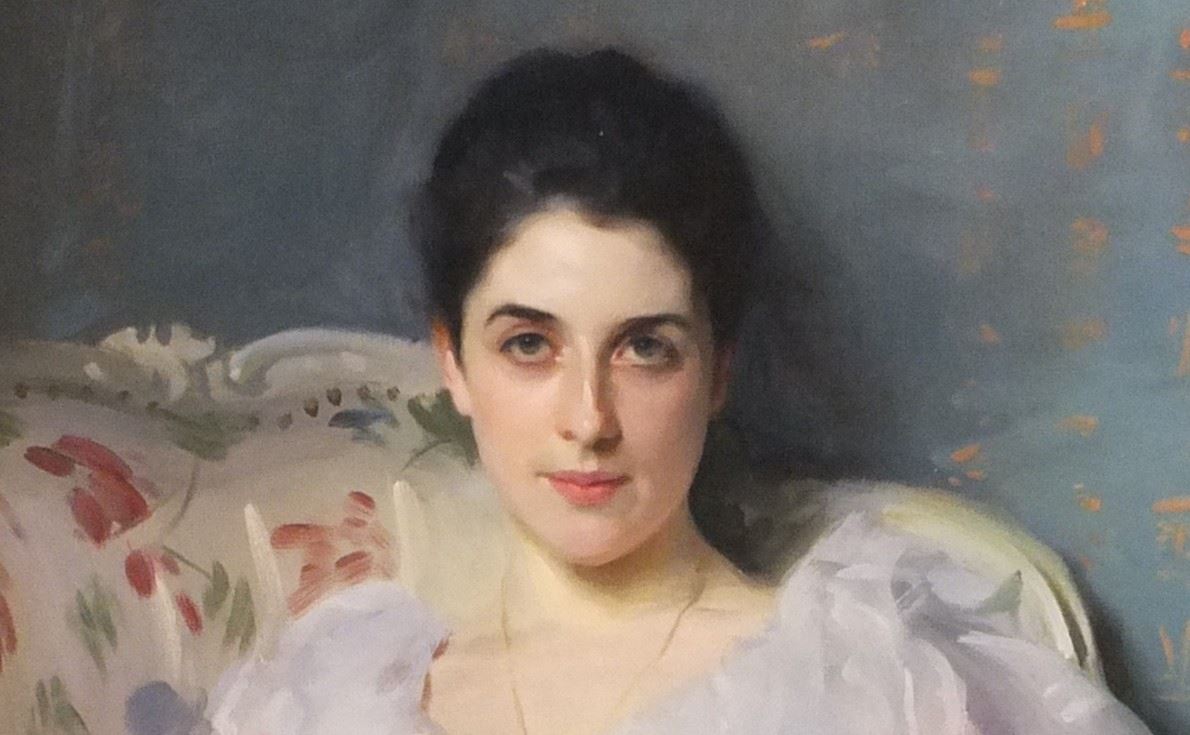 السيدة هي جرترود فيرنون Vernon (1864-1932). متزوجة من إِندرو نويل أَغْنْيُو. قَبُها: سيّدة قصر لوكْنُو Lochnaw. الرسَّام هو الأَميركي: جون سنجر سارجِنْتْ (1856-1925). تاريخ اللوحة الزيتية: 1892. موضوع اللوحة: "الفقر والغنى - جرترود سيّدة قصر لوكنُو". قياس اللوحة: 127x101 سنتم.