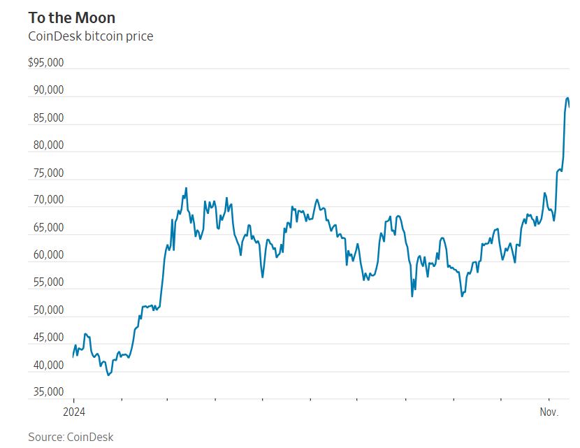 لقد أشعلت الانتخابات الصاروخ الذي يأمل عشاق العملات الرقمية في أن يأخذ الأسعار إلى القمر. فهم يتوقعون أن يفي الرئيس المنتخب دونالد ترامب بتعهده بإقالة رئيس لجنة الأوراق المالية والبورصات المناهض للعملات الرقمية، جاري غينسلر، وتخفيف اللوائح التنظيمية الخاصة بإدراج الشركات المشفرة والبورصات والتمويل والتعدين، وإنشاء مخزون وطني من البيتكوين.