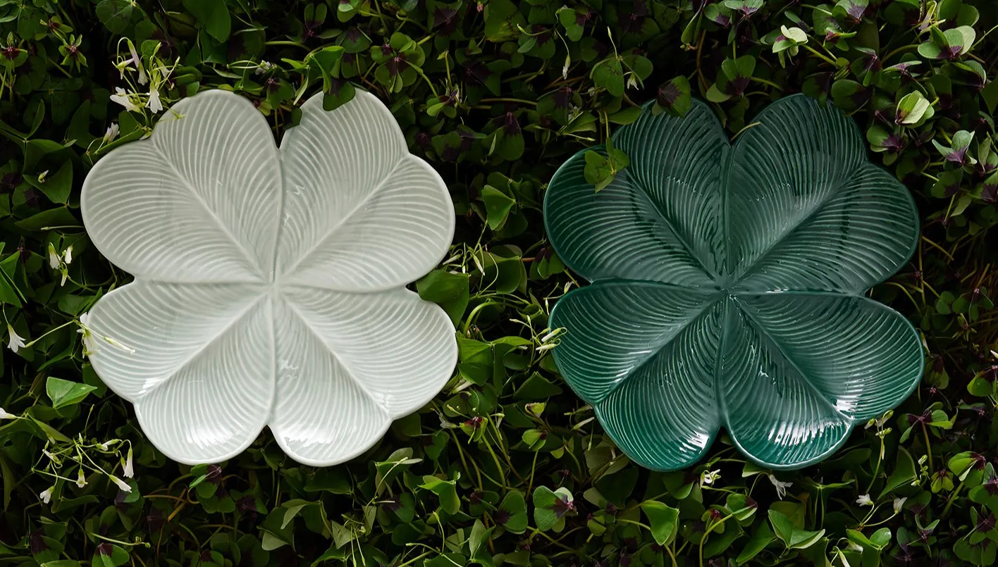 **Ce de Jour**، مجسم وسط الطاولة بتصميم مبتكر على شكل ورقة الربسيم، رمز الحظ والسعادة، تقدمه دار "جيان" بلمسة فنية تنبض بالتفاؤل.
