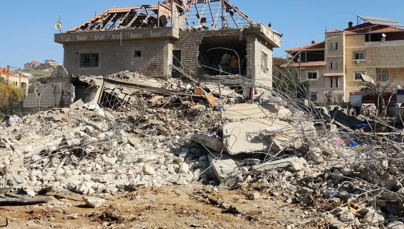 Severely damaged building in the village of Bednayel, Eastern Bekaa Valley, Lebanon, on February 21, 2026, following Israeli airstrikes. (AFP)