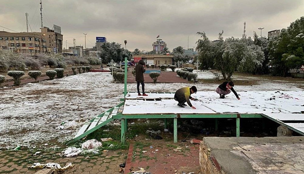 “Thank God it is snowing this morning,” said Aymen Ahmed, a protester. “The atmosphere is beautiful ... the people are very happy because this is the first time snow falls in Iraq.”