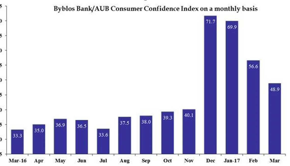 BEIRUT: The momentum of consumer confidence growth in Lebanon slowed down in the first quarter of 2017 in the face of previously strong economic and political expectations after the end of the country’s lengthy political vacuum last fall, according to the quarterly Byblos Bank/AUB Confidence Index.