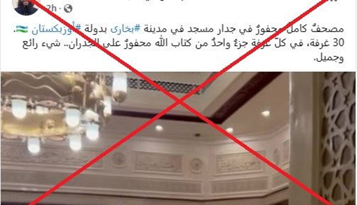 نشر حساب نشط على موقع التواصل الاجتماعي الأشهر في مصر "فايسبوك"، مقطع فيديو لأحد جدران المساجد محفور عليها المصحف الشريف وقال إنها في أوزبكستان؛ وهو تعليق غير صحيح تماماً بعد تتبع المصدر. FactCheck#