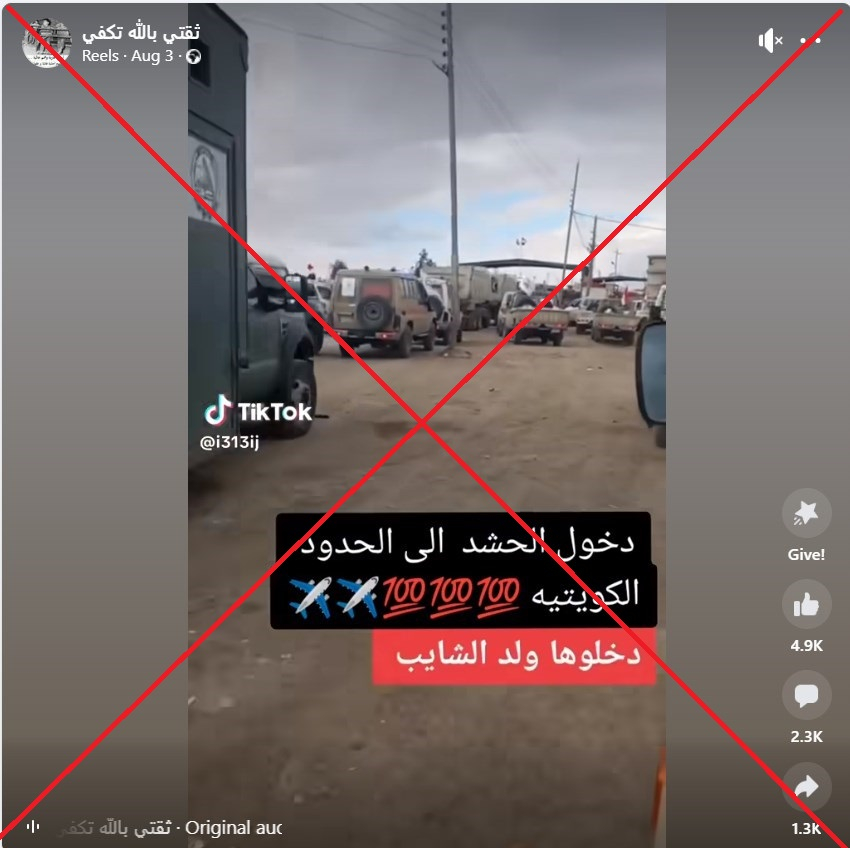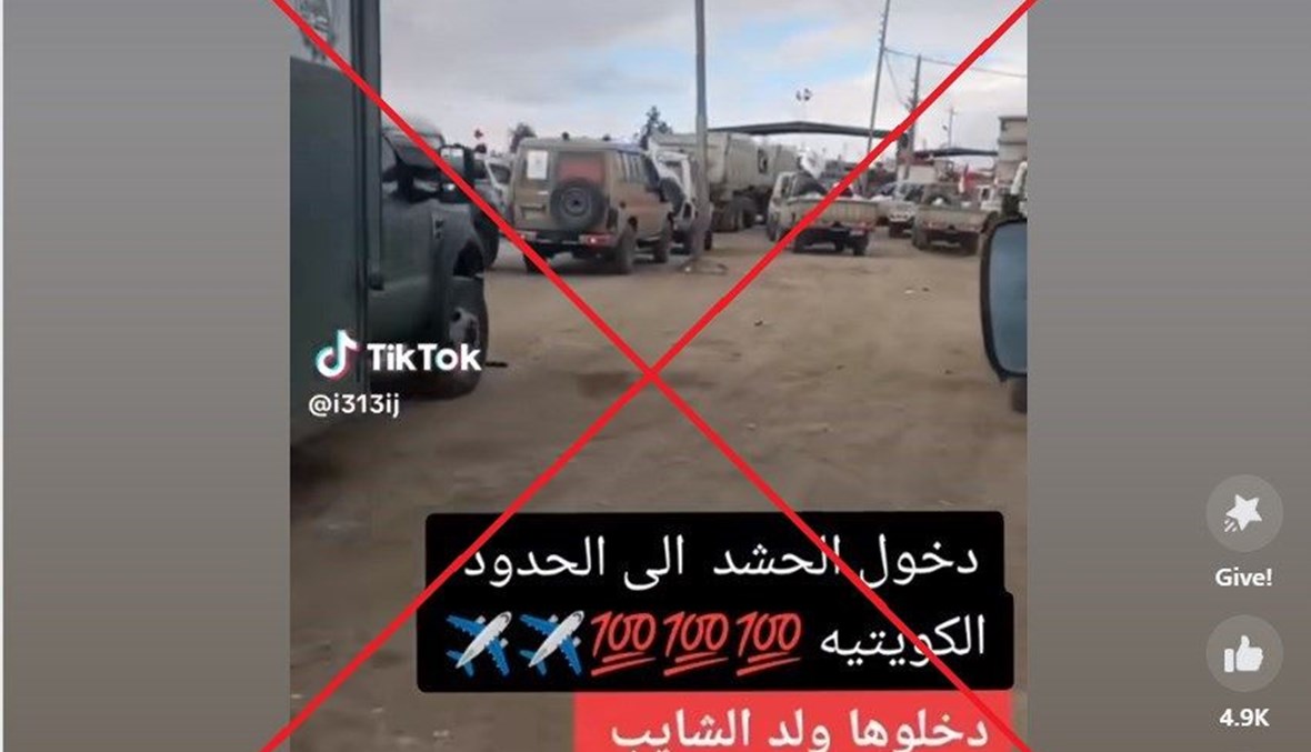 وجاء في التعليقات المرفقة أن المشاهد تُظهر دخول قوات من الحشد الشعبيّ إلى الكويت.