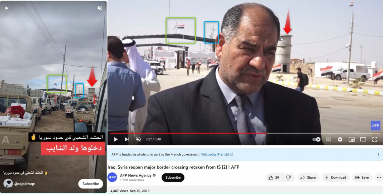 وبالفعل، تُظهر مقارنة المشاهد الظاهرة بالفيديو الكثير من العناصر المتطابقة مع مشاهد التقطها صحافيو فرانس برس للمعبر نفسه من الجهة العراقية.