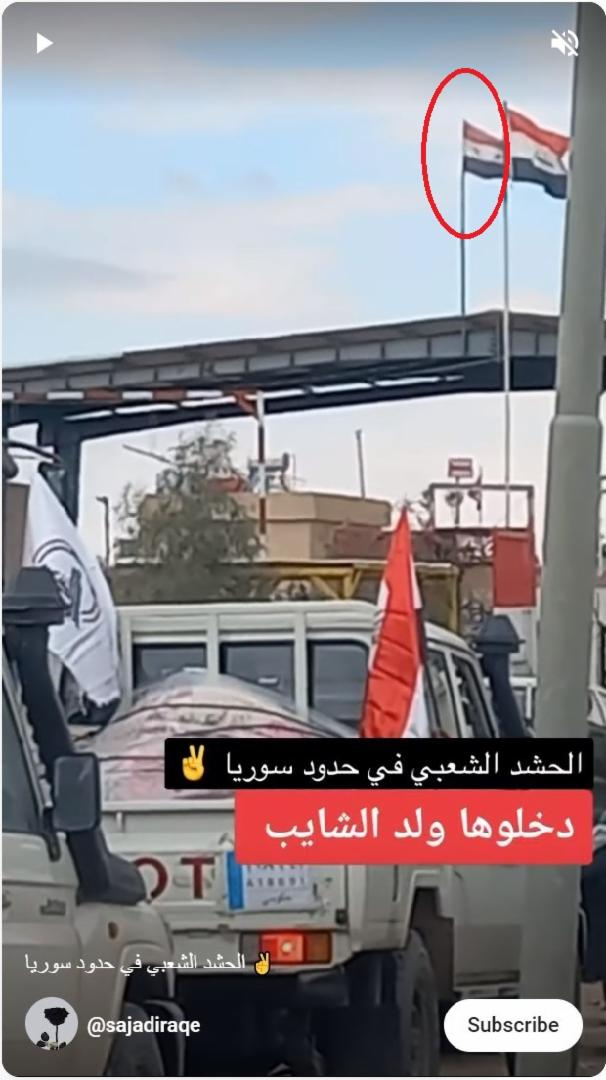 يظهر في الفيديو ما يبدو أنّه موكب عليه أعلام العراق ورايات قوّات الحشد الشعبيّ، وهو تحالف فصائل مسلحة موالية لإيران باتت منضوية في الدولة، على مقربة مما يبدو أنّه معبر حدودي.