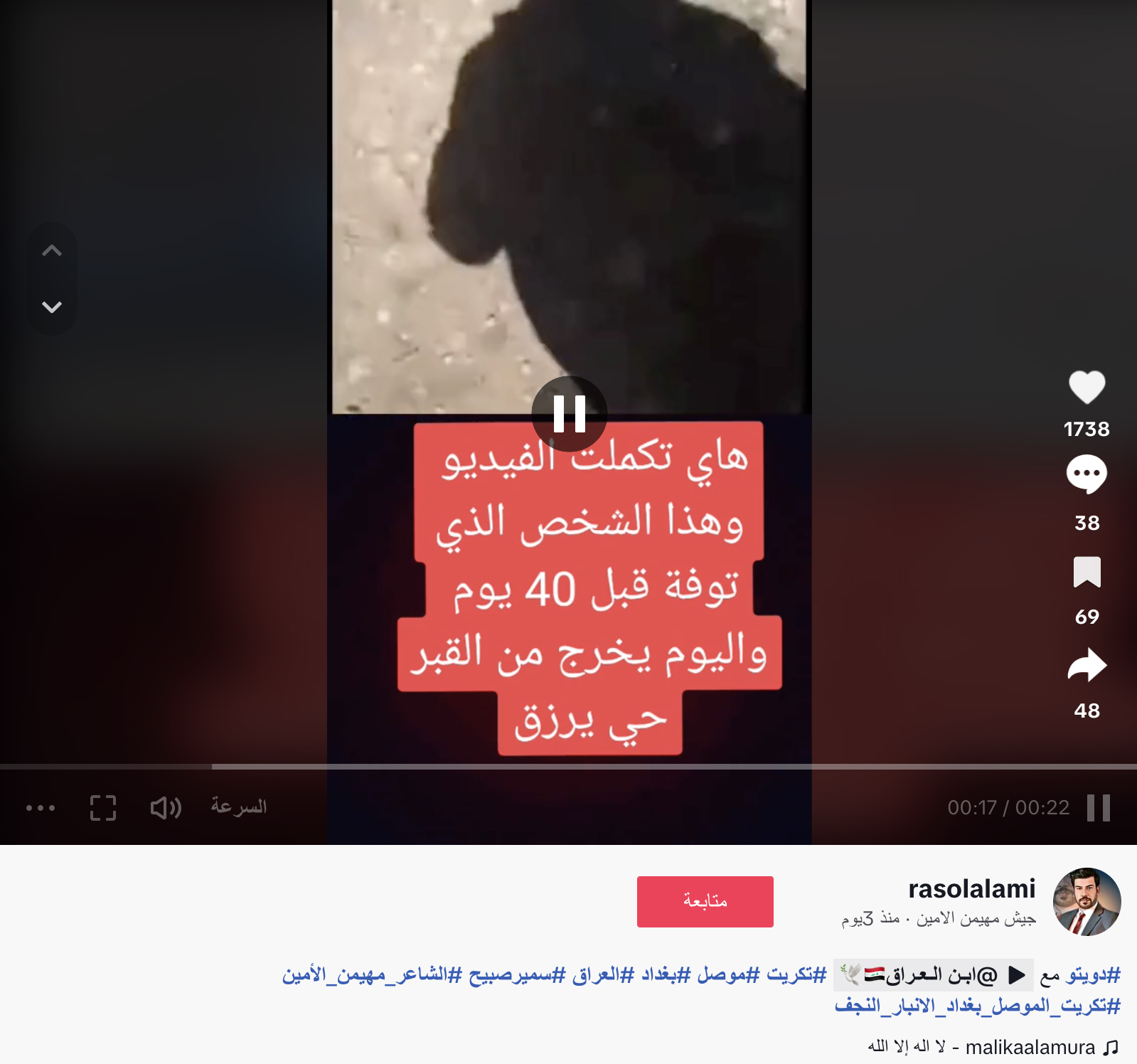 الوقائع: 0:22 ثانية مدة الفيديو. ويظهر إخراج جثمان شخص من قبر. وقد تكثف التشارك فيه أخيراً في مواقع التواصل الاجتماعي، مرفقاً بالمزاعم الآتية (من دون تدخل أو تصحيح): "هاي تكملت الفيديو وهذا الشخص الذي توفة قبل ٤٠ يوم واليوم يخرج من القبر في دهوك".