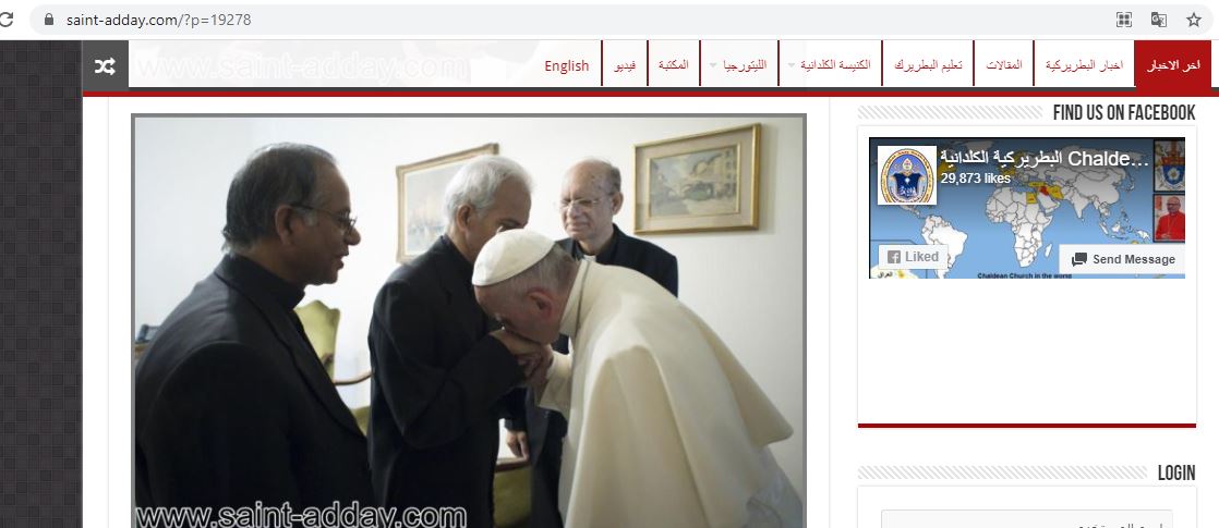 في ايار 2013، انتشرت للبابا فرنسيس صورة له مقبلا يد الأب روفائيل القطيمي، الكاهن العراقي الذي نجا من الموت في مجزرة كنيسة سيدة النجاة في بغداد في 31 تشرين الاول 2010 (هنا ايضا).