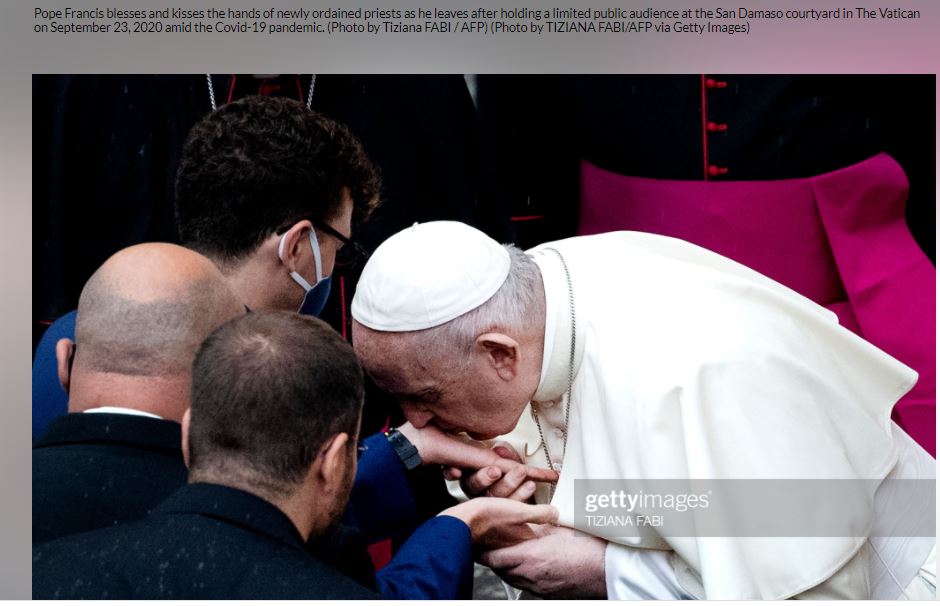 وفي 17 كانون الاول 2014، التقطت للبابا فرنسيس صورة (وهنا ايضا) وهو "يقبل راحات ايدي كهنة رُسِموا حديثا"، في ساحة القديس بطرس في الفاتيكان.