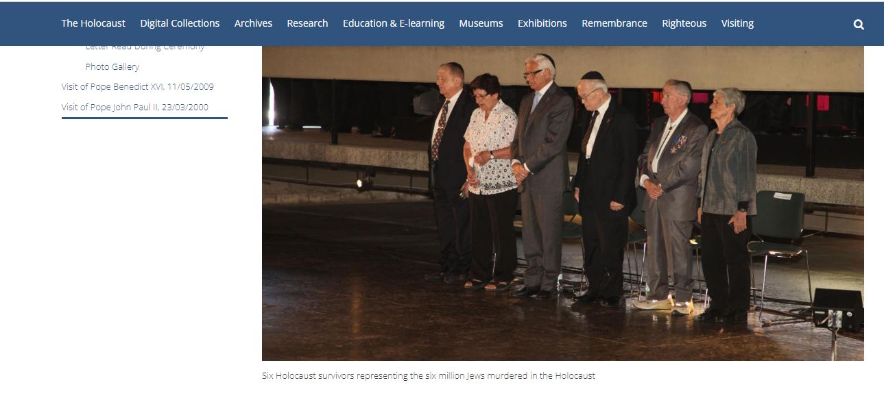وذكر حساب مؤسسة ياد فاشيم، او المركز العالمي لإحياء ذكرى المحرقة، ان "زيارة البابا فرنسيس لياد فاشيم حصلت في قاعة الذكرى، حيث شارك في مراسم تذكارية، وحيا ستة ناجين من المحرقة. وألقى كلمة، ووقع سجل ضيوف ياد فاشيم. وخلال مراسم التأبين، أضاء الشعلة الأبدية من جديد، ووضع إكليلا تخليدا لذكرى ضحايا المحرقة. وفي ختام الزيارة، تم تقديم نسخة طبق الأصل من لوحة تعود إلى عصر المحرقة" (هنا ايضا).