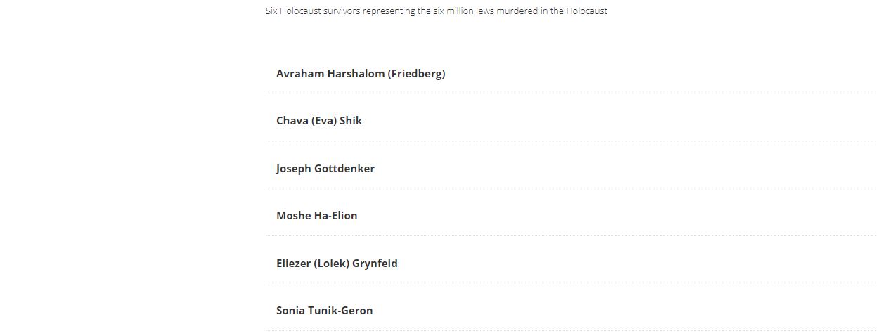 ولكل منهم سيرة ذاتية خاصة، مواليد مختلفة، وان جمع بعضهم بلد منشأ واحد. هارشالوم ولد في بلدة بروزاني (بيلاروسيا اليوم) عام 1925. وشيك (هنا) وشقيقتها التوأم ميريام ولدتا في نوفي ساد في صربيا عام 1939. وغوتدينكر ولد في ساندوميرز ببولندا عام 1942. وها إليون ولد في سالونيك باليونان عام 1925. وغرينفيلد ولد في لودز في بولندا عام 1923. وتونيك-جيرون ولدت عام 1924 في ستولبس في بولندا.