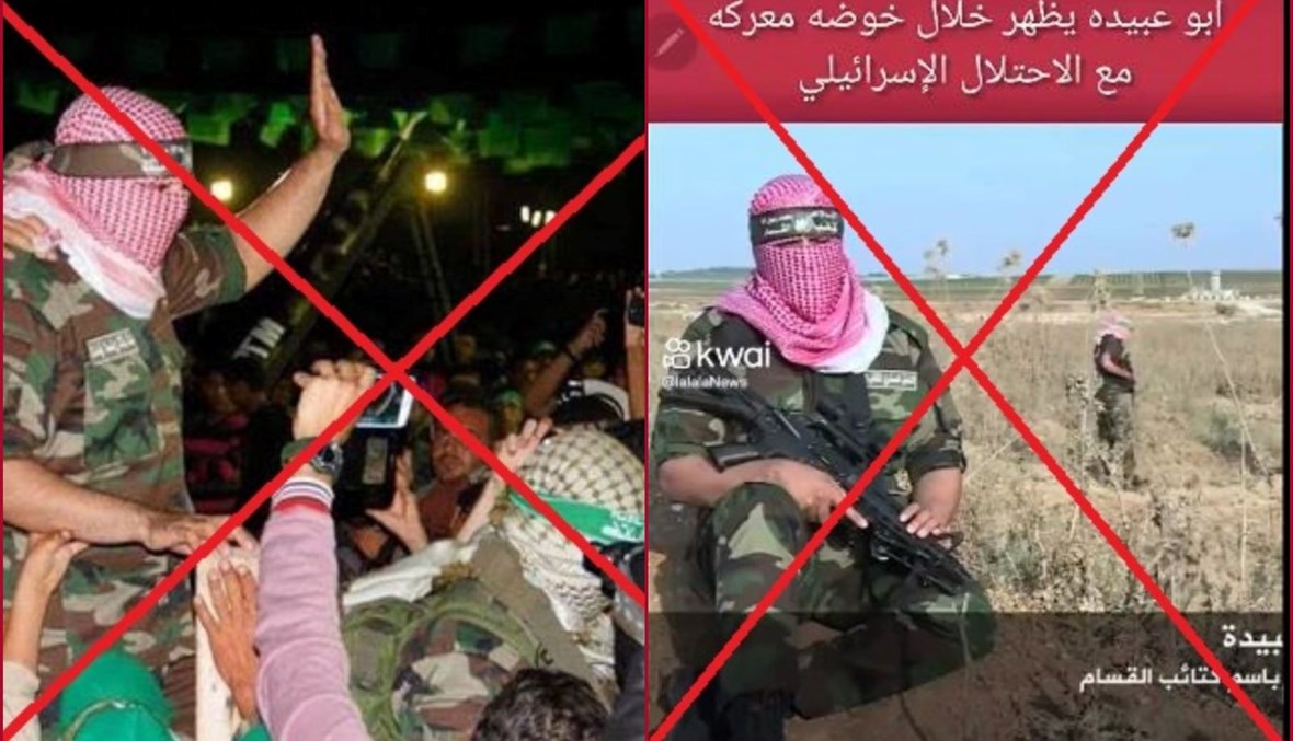 النتيجة: اذاً، لا صحة للمزاعم ان الصورة والفيديو المتناقلين يظهران أبو عبيدة، الناطق باسم كتائب عز الدين القسام -الجناح العسكري لحركة المقاومة الإسلامية (حماس)، خلال الحرب المتواصلة بين إسرائيل وحركة حماس. في الواقع، الصورة تعود الى تشرين الثاني 2014، وتظهر أبو عبيدة يحيي الناس خلال مهرجان في رفح. والفيديو مجتزأ من تقرير نشرته قناة "الجزيرة" في أيلول 2015، عن رجال من المقاومة الفلسطينية هاجموا الموقع الإسرائيلي في معركة ناحال عوز.
