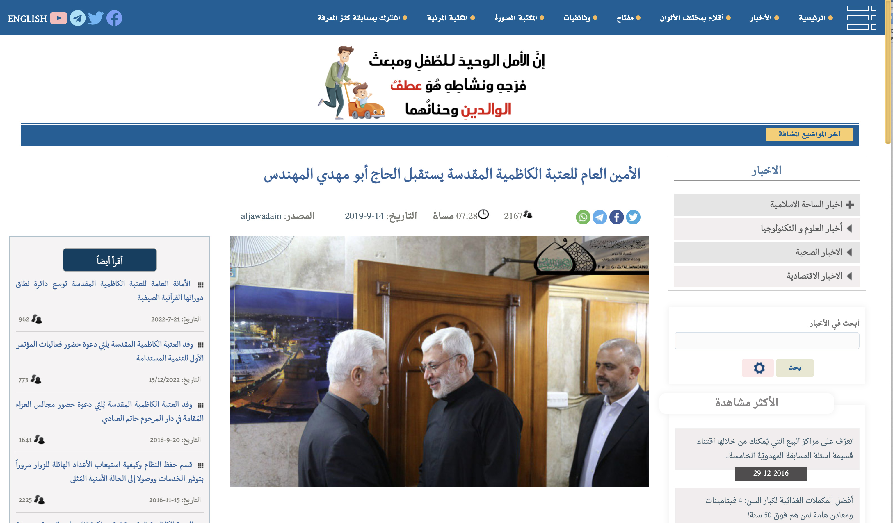 فالبحث العكسي عنها يوصلنا إلى موقع المرجع الإلكتروني للمعلوماتية، الذي نشرها (هنا) في عام 2019، بعنوان " الأمين العام للعتبة الكاظمية المقدسة يستقبل الحاج أبو مهدي المهندس"، ليتبين أن الصورة تجمع أبو مهدي المهندس والأمين العام للعتبة الكاظمية حيدر حسن الشمري.