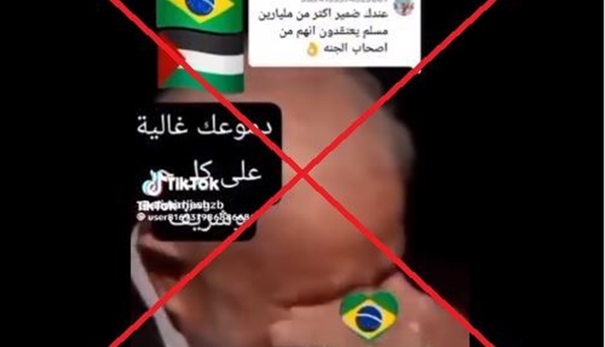 المشاهد تظهر الرئيس البرازيلي لويس إيناسيو لولا دا سيلفا يمسح دموعه، بينما كان يبكي، وفي يده ميكروفون. وقد تكثف التشارك في الفيديو أخيرا عبر حسابات ارفقته بالمزاعم الآتية (من دون تدخل او تصحيح): "هذا الرئيس البرازيلي يبكي على ماساه غزه...".