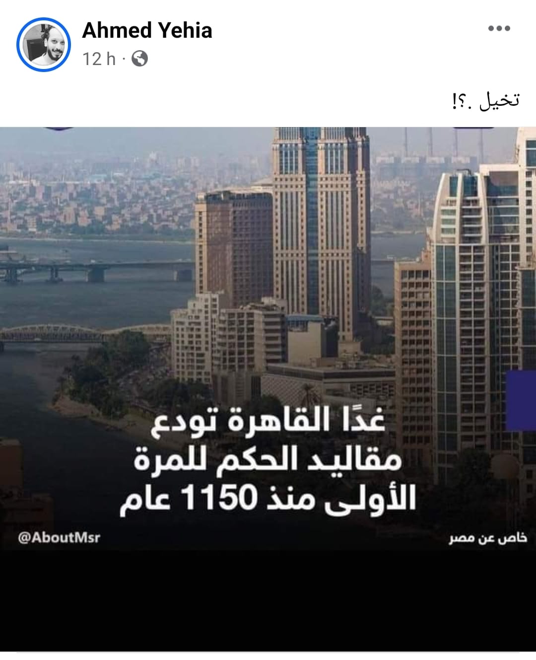 وكتب أحد الحسابات منشورا جاء فيه (من دون تدخل): غدا القاهرة تودع مقاليد الحكم للمرة الأولى منذ 1150 عاما.