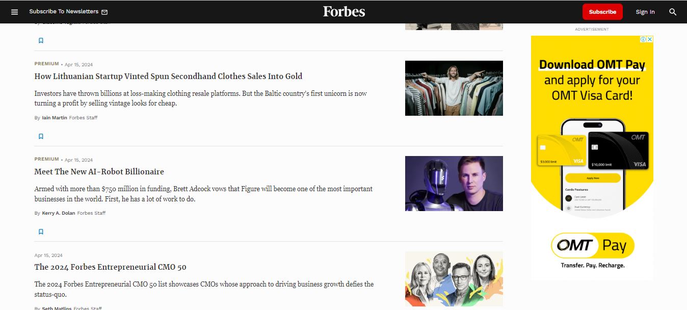 كذلك، لا نعثر على غلاف لـ"فوربس" يعرض "الترتيب النهائي لأقوى الأشخاص في العالم في 15 نيسان 2024".