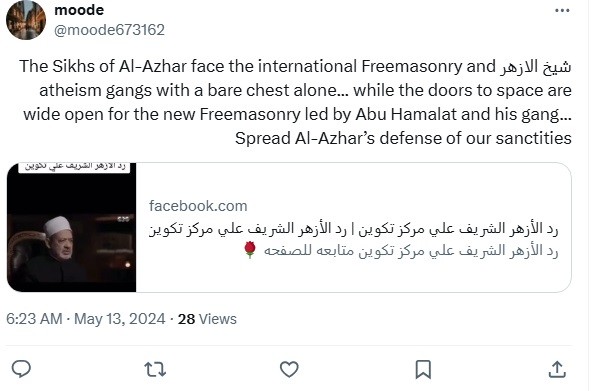 انتشر على موقع التواصل الاجتماعي الأشهر في مصر فايسبوك وموقع التدوينات القصيرة إكس مقطع فيديو لشيخ الأزهر بمزاعم أنه جاء ردا على تأسيس مركز تكوين. الا أن للفيديو سياقا مختلفا تماما. FactCheck#